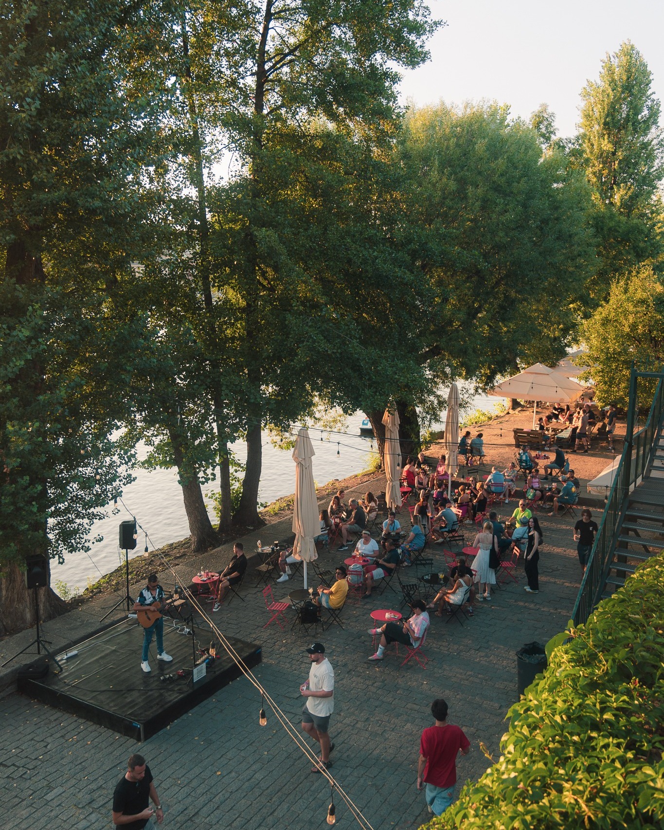 Těšit se můžete na každodenní hudební vystoupení od 17:00 do 20:00, pohodové posezení u řeky, čerstvou pinsu přímo z pece, osvěžující drinky a jeden z nejkrásnějších výhledů na Pražský hrad.