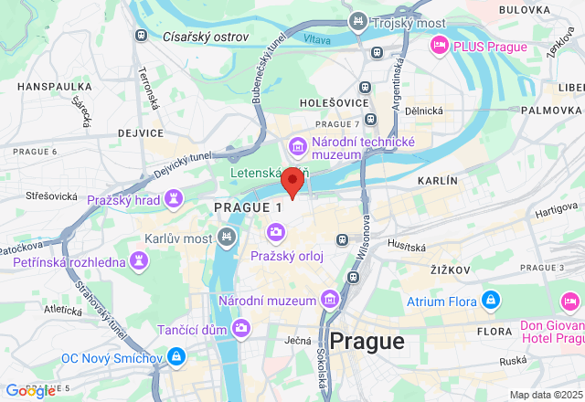 Vstup do areálu Anežského kláštera je z ulic Anežská a Na Františku.