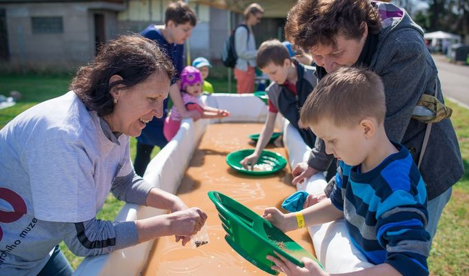 Ve venkovní části areálu vás čeká program pro malé i velké – například rýžování českých granátů, odlévání trilobitů, ukázky kroužkování ptáků nebo badatelské aktivity zaměřené na pražskou přírodu a vědeckou práci v terénu. Během entomologických a lichenologických exkurzí budeme pod širým nebem objevovat svět hmyzu a lišejníků.