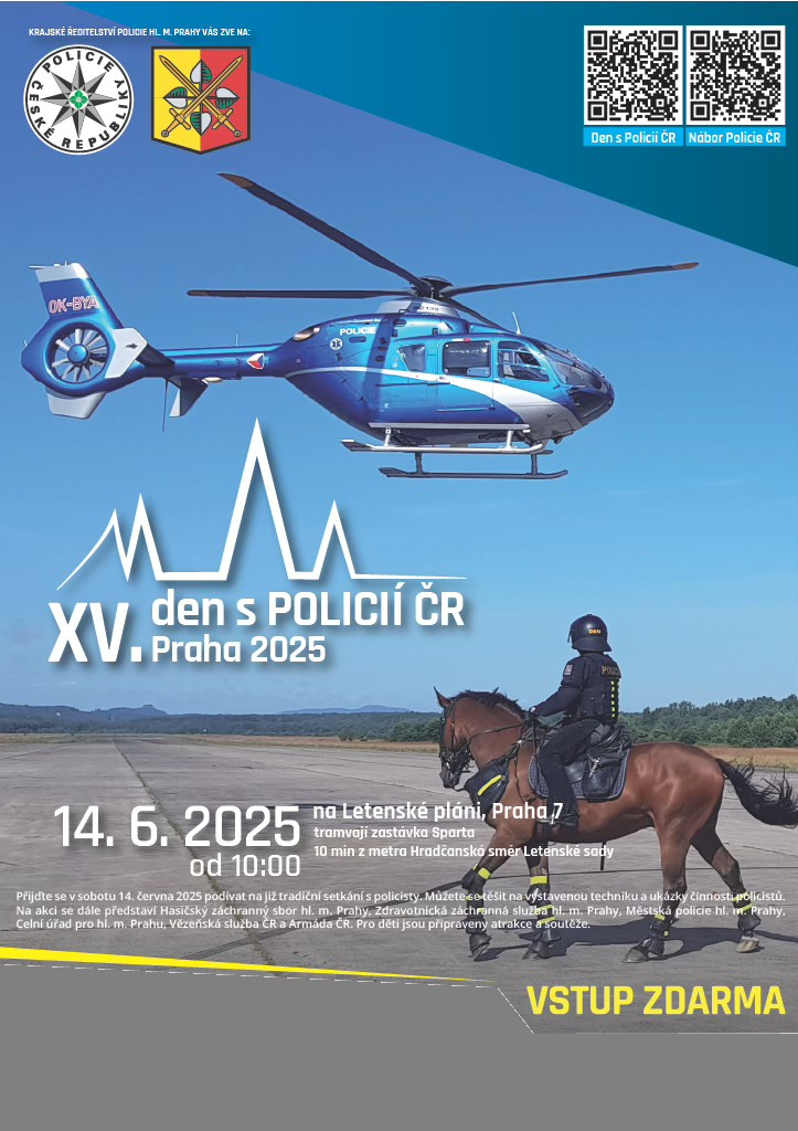 Pořadatelem XV. Dne s Policií na Letenské pláni v Praze je Krajské ředitelství policie hlavního města Prahy.