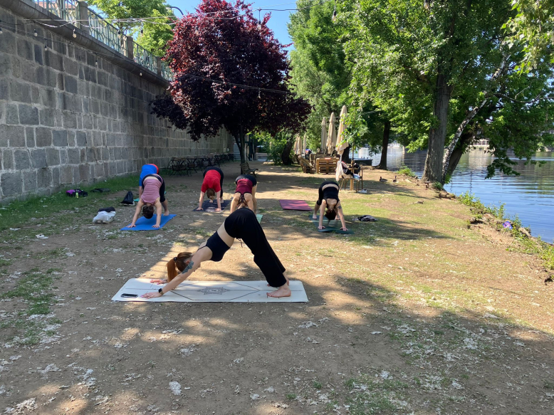 V sobotu ráno vás na Čapadle čeká ranní lekce jógy s výhledem na řeku a klidnou atmosférou v centru Prahy.