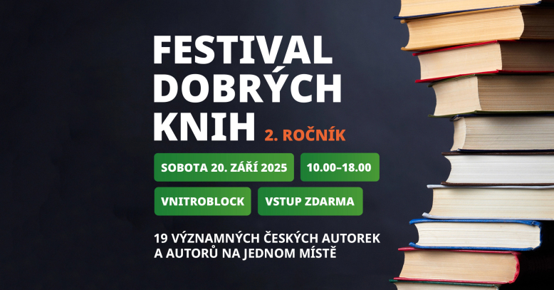 Pojďte s námi strávit nezapomenutelnou knižní sobotu a nenechte si ujít již druhý ročník FESTIVALU DOBRÝCH KNIH.