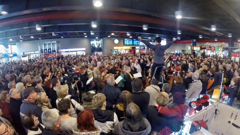 Jinak se ale nic nemění - zahrajeme a zazpíváme v 13:00 v severní části vstupní haly Wilsonova nádraží v Praze. Pulty a noty s sebou, hraje se verze Herzl.