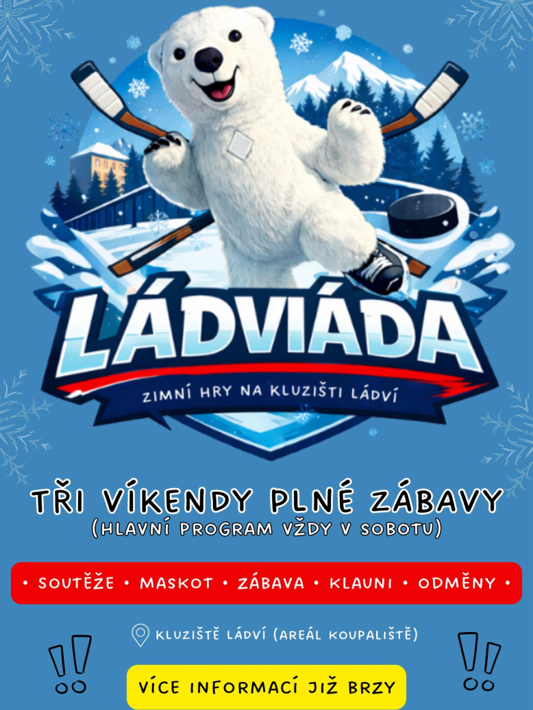 Zveme Vás na Ládviádu, zimní hry, kde si můžete vyzkoušet, jaké je to být olympionikem - zapálíme slavnostní pochodeň, rozdáme akreditace a společně si zasoutěžíme na ledě! Akce proběhne na kluzišti Ládví během tří víkendů. Hlavní program proběhne vždy v sobotu - neděle slouží jako doplňkový den (možnost dokončit aktivity a získat razítka za nestihnuté aktivity).