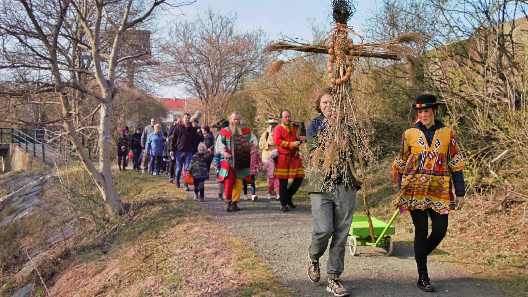 Morena a průvod doprovázený lidovými písněmi.