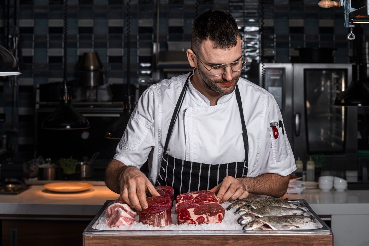 Středobodem zážitku je výběr masových specialit, které jsou připravovány na Josper grilu - ikonickém španělském grilu kombinujícím otevřený oheň s precizní regulací teploty. Hosté si mohou zvolit svůj ideální kousek masa.