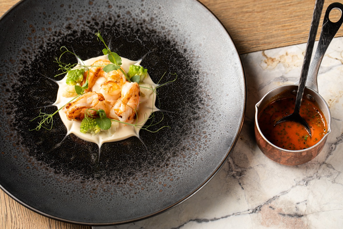 Moderní italská restaurace Amano letos přichystala například jako předkrm grilované krevety, květák , pinie, ´Nduja.
