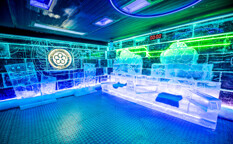 Unikátní bar, jehož celý interiér – od stěn, přes stoly až po sklenice – je vyroben z ledu.Unikátní bar, jehož celý interiér – od stěn, přes stoly až po sklenice – je vyroben z ledu.
