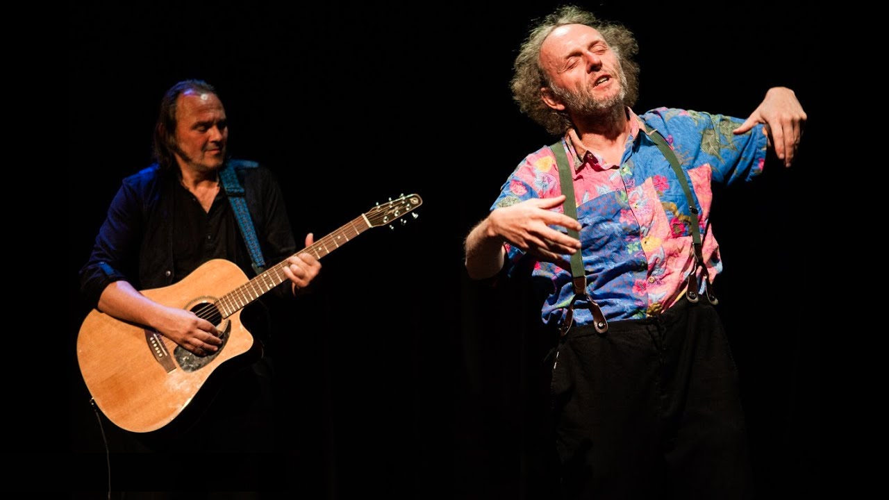 Totální improvizační představení Jaroslava Duška a Pjéra la Šéz'e pod světelným dohledem Viktora Zborníka.