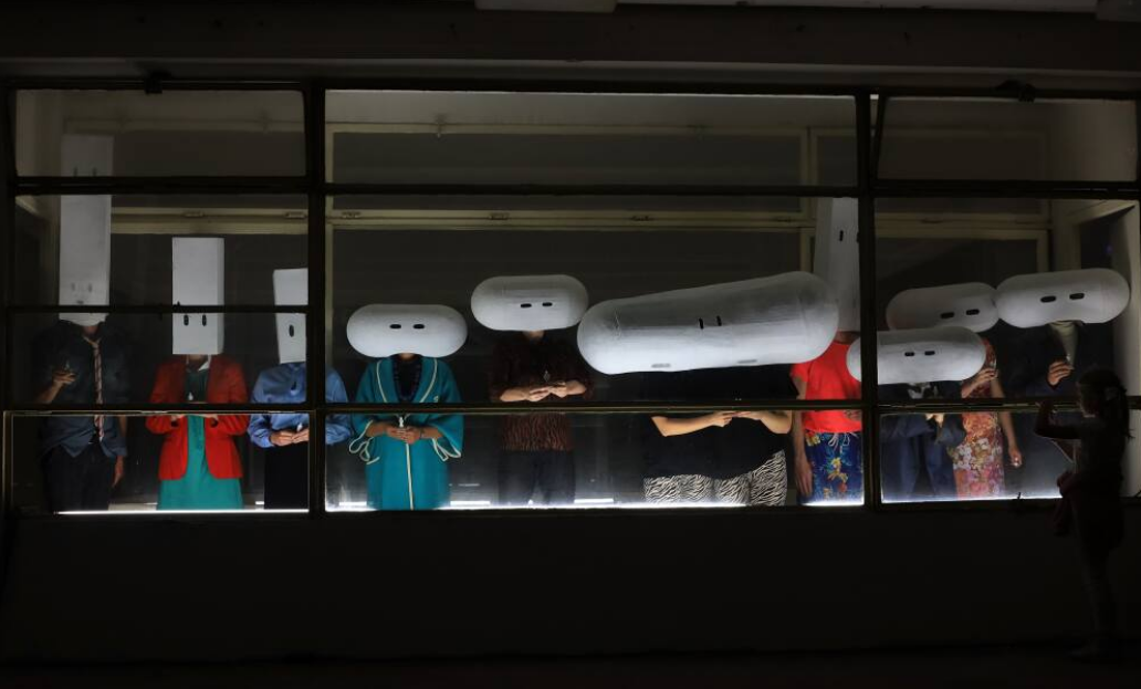 Performativní instalace představí sérii neobvyklých postav, jejichž těla připomínají lidi, ale jejich hlavy nabývají abstraktních geometrických tvarů.
