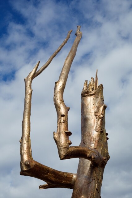 Z jednoduchého přeskládání dřevěných fragmentů vyrůstá obraz pokory, připomínka dětské hry v lese, nová bytost odkazující k transcendentální potřebě člověka, k touze po nedostižném a přesahujícím. Připomíná nám, že jsme se navzdory všem snahám ocitli na hranici: člověk je neoddělitelnou součástí přírody, a přesto se od ní čím dále víc vzdaluje. Samotný objekt, evokující primitivní artefakty přírodních kultur, se pokouší o vertikální smíření, totemické vzepětí k vesmíru. Toto smíření budeme dříve či později nutně potřebovat. Bez odpovědnosti a bez kontaktu s přírodou a naší konečností – v tom spočívá naše největší ztráta: nezůstáváme celiství. A tak vyvstává otázka: je to příroda, která se modlí za člověka, nebo člověk, který se modlí za přírodu?