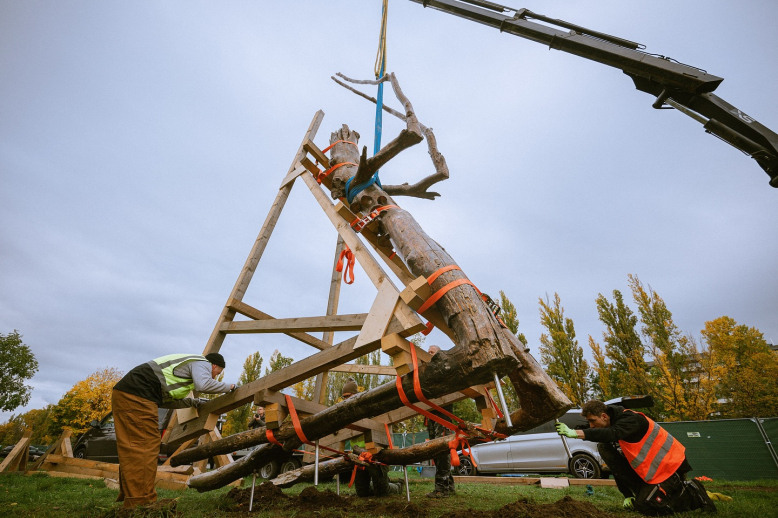 Monumentální objekt Krištofa Kintery vznikl na popud nadačního fondu Bohemian Heritage Fund. Autor na něm začal pracovat již v roce 2019 a během koronavirové pandemie se výroba ve slovenské slévárně časově protáhla. Praying Wood dokončil umělec ve svém pražském ateliéru v roce 2023 a nyní se konečně díky spolupráci s Galerií hlavního města Prahy ukáže veřejnosti na ostrově Štvanice. Odlitek vznikl ve spolupráci se slovenským sochařem a slévačem Lacem Sabo.