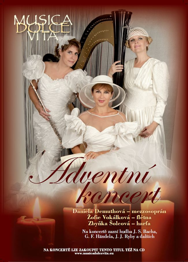 Na prvním ze série adventních koncertů v kostelích Prahy 2 vystoupí soubor Musica Dolce Vita. Tvoří jej tři zkušené interpretky: Daniela Demuthová - mezzosoprán, Žofie Vokálková - flétna, Zbyňka Šolcová - harfa.