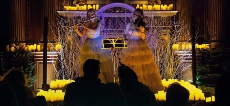 Pod stovkami svíček zaznívá ta nejkrásnější vánoční hudba v podání jednoho z nejznámějších pařížských duet — Anastasie a Viktorie Chudo.