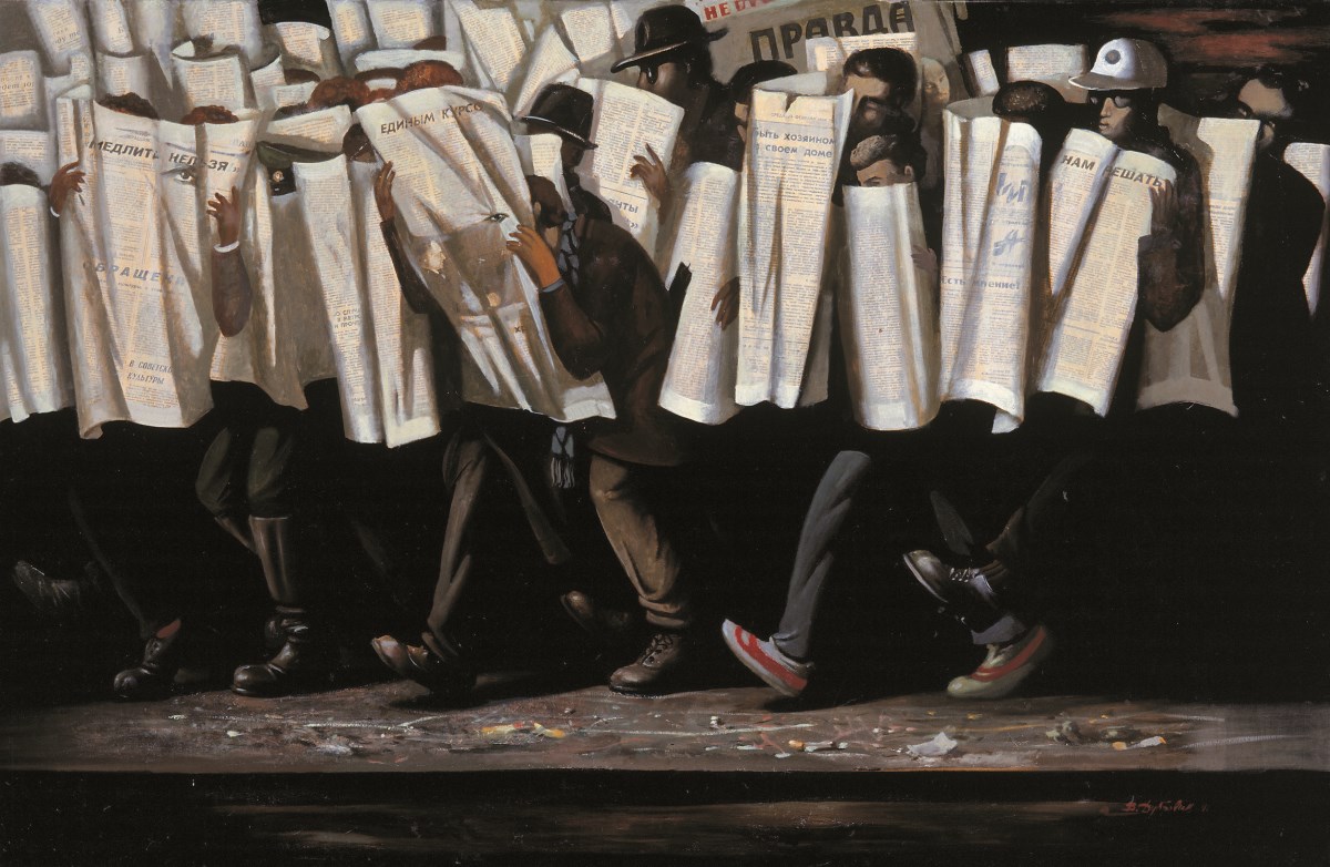 Dalším krokem ve stále probíhajícím a plodném dialogu mezi masmédii a uměním byla kritická reflexe jejich role jako nástroje propagandy v obdobích vlády totalitních režimů. Dadaismus například bezprostředně reagoval na dezinformace šířené nacisty ve 30. letech 20. století. Pařížští „noví realisté“ svými dekolážemi a ambalážemi hravým, ale hloubavým způsobem reagovali na konzumerismus v poválečné západní Evropě. Vztah masmédií a umění vyvolal intenzivní dialog a přinesl pozoruhodné výsledky na obou stranách. Krátce – v období Bauhausu – umělecká a mediální sféra spolupracovaly: El Lisickij, Max Bill, Vasilij Kandinskij a mnozí další prosazovali utopické představy o lepším světě a využívali umění a média jako platformu pro své společensko-politické poselství.