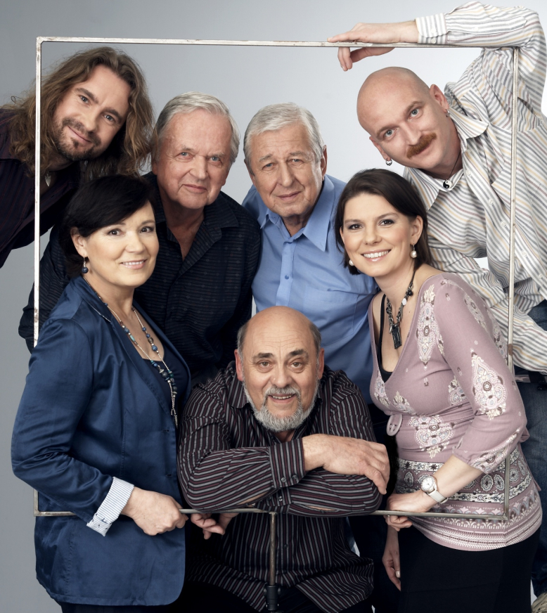 Jiří Tichota, Dušan Vančura, Zdena Tichotová, Jiří Cerha, Veronika Součková, Jiří Holoubek a Pavel Peroutka. To je Spirituál kvintet.