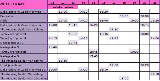 Program CINESTAR Černý Most 2.8. - 8.8.