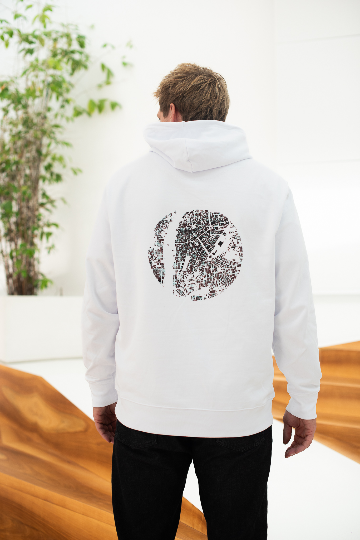 S dlouhými zimními měsíci před námi vám třeba přijde vhod bílá unisex mikina s kapucí z edice Švarcplán Prahy.