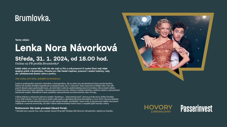 Každý měsíc si zveme lidi, kteří dle nás mají co říct a svůj pracovní či osobní život mají nějak spojený právě s Brumlovkou. Chceme pro Vás hledat inspiraci, pracovní i osobní hodnoty, rady, ale i představovat životní výhry a prohry.