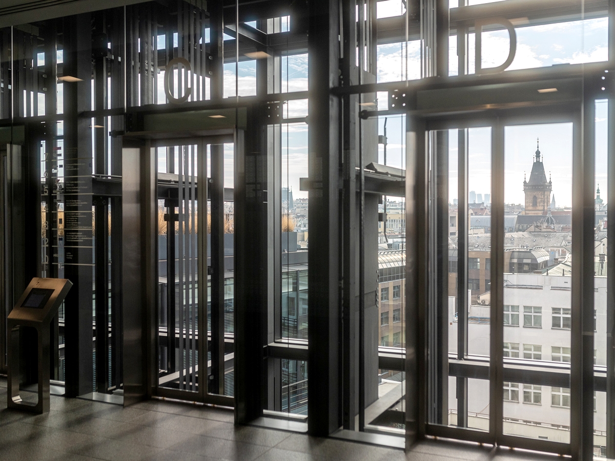 Prohlídka vám umožní nahlédnout do technického zázemí budovy v podzemních patrech i vystoupat na rozlehlou střešní terasu.