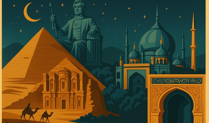 Vydejte se na cestu časem a prostorem, kde se střetávají civilizace, rodí se velké myšlenky a vznikají památky, které dodnes berou dech. Pět přednášek v Náprstkově muzeu, pět kapitol lidské tvořivosti a odvahy – od monumentálních Sedmi divů starověkého světa, přes mystickou věčnost Egypta, genialitu Nabatejců v poušti Arábie, kosmopolitní tepnu Istanbul, až po kouzlo a dědictví Al-Andalus.