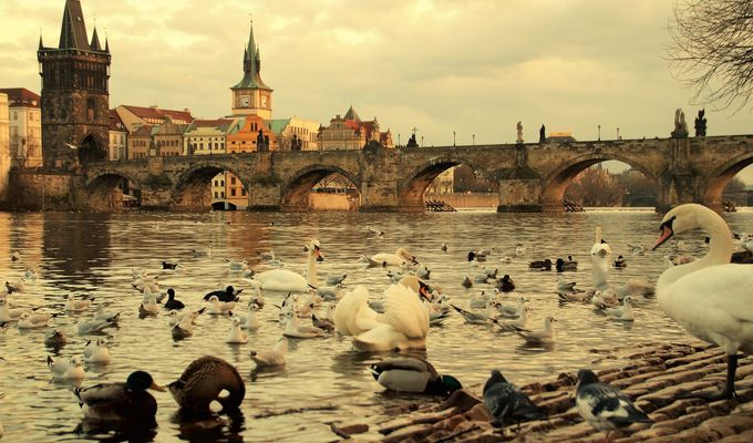 Nezamrzající Vltava se stala pravidelným a významným zimovištěm mnoha ptačích druhů. Zimující ptáci si oblíbili centrum města, kde loví potravu a odpočívají na jezech a nábřežích. Přímo u Karlova mostu, kolem Kampy a Střeleckého ostrova se tak můžeme setkat s poláky, hoholy, volavkami, kormorány a několika druhy racků. Občas se zde objeví i skutečná rarita jako je např. některá z potáplic.