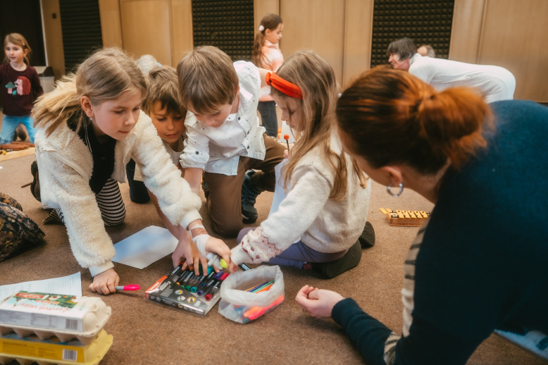Hudební workshop pro rodiče s dětmi ve věku 3–5 let s lektorkou Karolínou Řepovou.