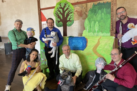 Martin Beneš (hoboj), Petra Benešová (flétna), Petr Kubík (klarinet), Radovan Skalický (fagot), Pavel Staněk (lesní roh) ze Severočeské filharmonie a Severočeského divadla společně s vypravěčem Janem Vozábem a jeho loutkami převyprávějí nejmenším i těm starším divákům napínavý příběh baletní pohádky.