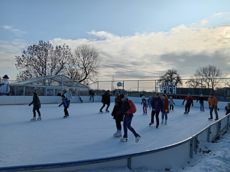 Veřejné bruslení na Vypichu. Provozovatelem kluziště je Dům dětí a mládeže Prahy 6.