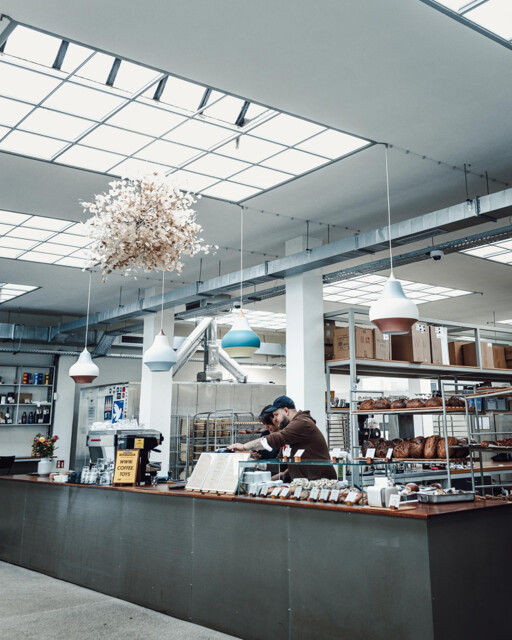 Káva a chléb, to je, oč tu běží. Nic moc dalšího tady nenajdete (kromě nás samozřejmě). Vlastně ... ještě můžete hledat mávající kočičku:-) Druhá EMA je součástí naší libeňské "dílny", kde se učíme pražit kávu, péct chleba, kde zaškolujeme naše nové baristy, a kde bychom jednou rádi pečení chleba nabídli i vám ve formě kurzů. Hrajeme si s dlouze fermentovanými těsty a radost si děláme pražením kávy na vesmírném stroji Diedrich IR-12. Tahle EMA je tak trochu sebestředná a proto vám nabídne jen a jen naši kávu Alf & Bet.