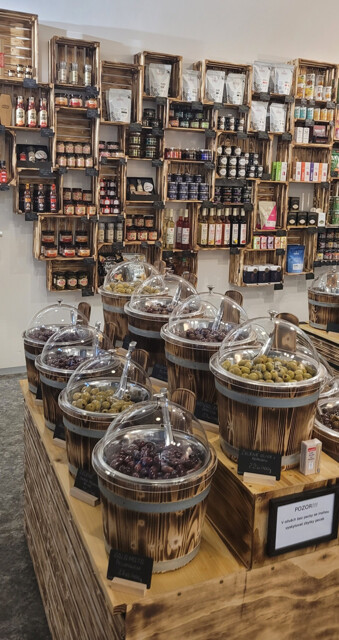 Čeká vás velký výběr oliv, omáček od jemně pikantních až po extra pálivé a k tomu voňavá káva na dobrou náladu.