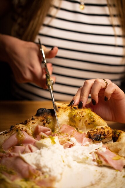 Pro neapolskou pizzu jsou charakteristické vysoké, nadýchané okraje. Těsto vzniká z pouhých čtyř ingrediencí: pšeničné mouky, kvasnic, soli a vody. Ta pravá věda začíná s kynutím. „Těsto potřebuje péči a čas, takže ho nechávám vyzrát několik dní. Dlouhým procesem kynutí se také rozloží část lepku, díky čemuž je neapolská pizza lépe stravitelná než jiné verze,“ uvádí David Adamček. Každou pizzu následně připravují tři lidé. První vypracuje těsto a doplní jej o základ a další ingredience, které lze zapéct. Poté přichází na řadu pecař, který vkládá pizzy do pece a opět je vytahuje, přičemž k upečení jedné stačí něco málo přes minutu. Třetí člověk má na starosti finalizaci, tedy dozdobení čerstvými surovinami a výdej.