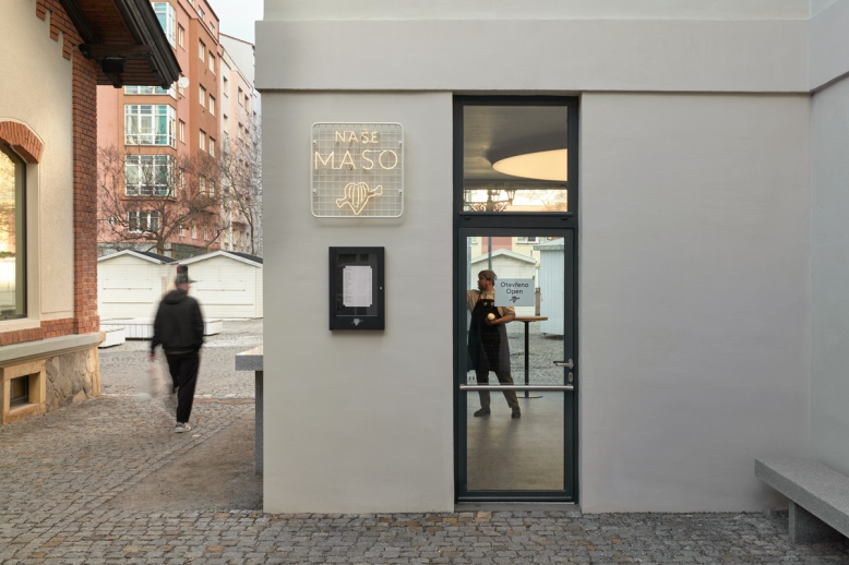 Dominantou interiéru, který navrhl AP Atelier, je masivní výdejní pult ze zeleného řeckého mramoru připomínající zkamenělou trávu. Přes velké vitríny mohou hosté sledovat řezníky přímo při práci. Provoz zahrnuje také dvě výdejní okénka a samoobslužnou vitrínu s připraveným masem, hotovými jídly z Ambiente a pečivem na doma. Plánované otevření je leden 2026.