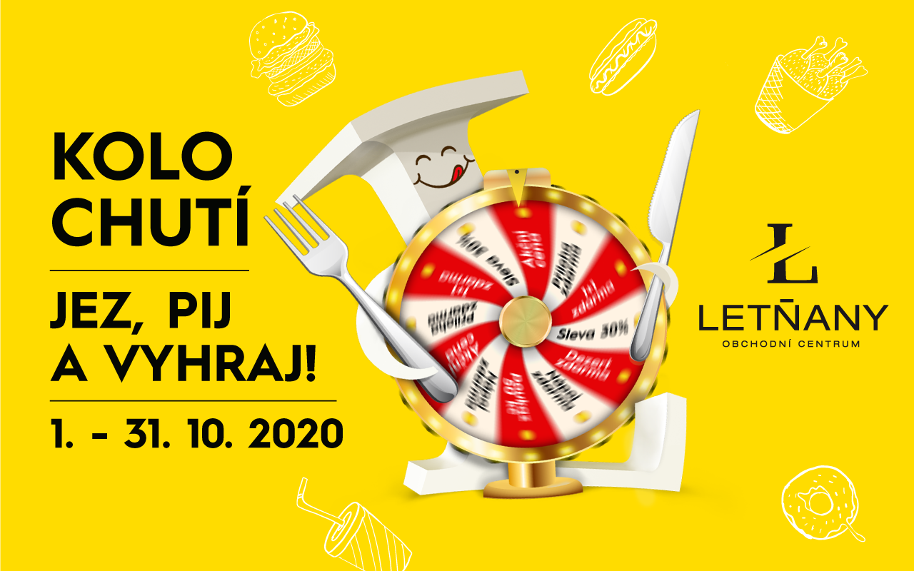 Kolo chutí bude umístěné v termínu 1. – 31.10.2020 ve spodním food courtu u Cinema city a soutěži můžete každý den v čase 11.00 – 19.00hodin.