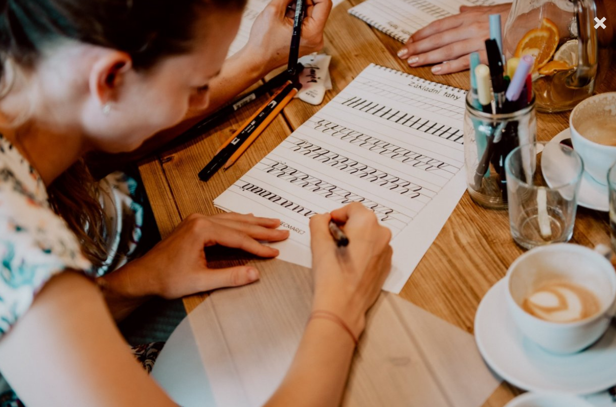 V ceně kurzu dostanete malý brushpen (štětečkový fix), osnovy, NOVOU aktualizovanou písanku, kterou využijete na místě a následně pro trénování doma a další psací pomůcky. K dispozici i další brush peny jiných značek, abyste si mohli vyzkoušet, který vám nejvíce sedí.