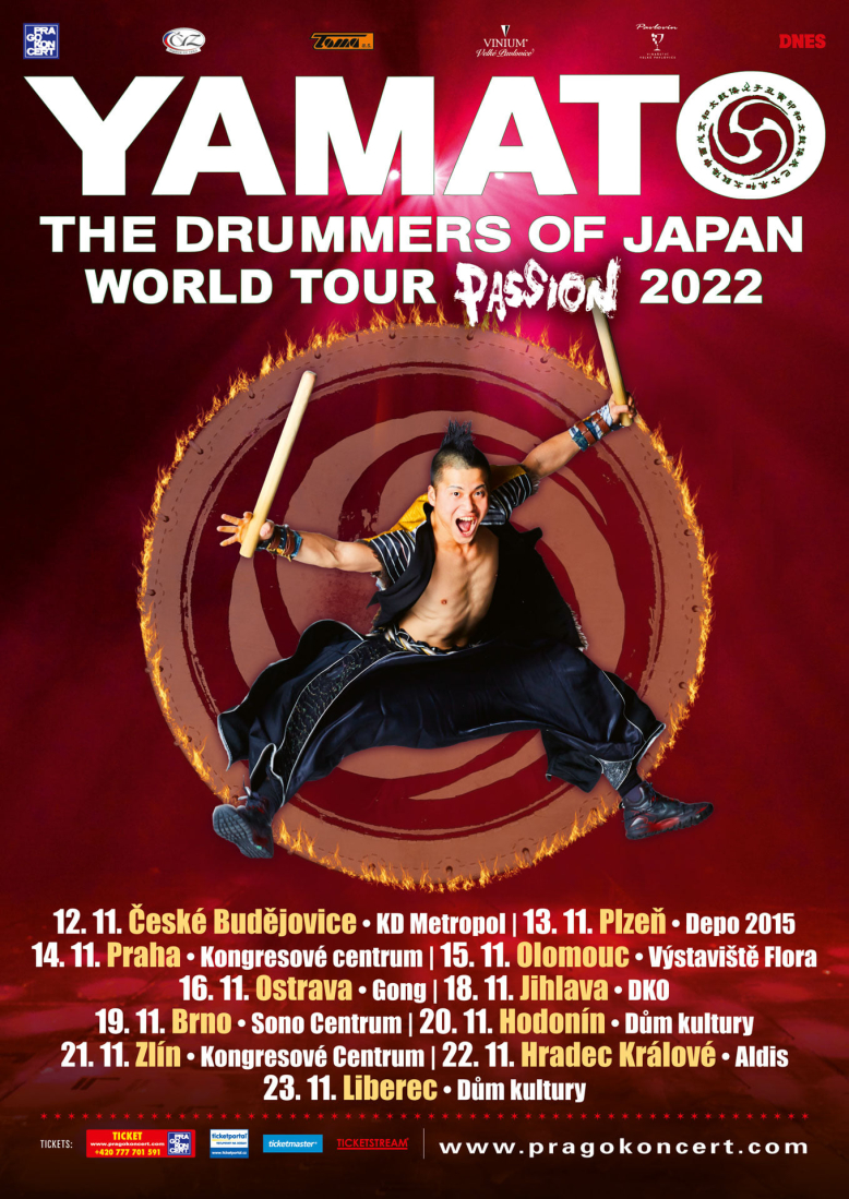 YAMATO – legendární japonský soubor sestavený z těch nejlepších „Taiko“ bubeníků se měl po třech letech vrátit zpět do České republiky se zbrusu novou show „Passion“! Bohužel, vzhledem ke stále nejisté situaci ve světě kvůli coronavirové pandemii, různým bezpečnostním opatřením v jednotlivých zemích, které znemožňují bezpečné a bezproblémové cestování a v neposlední řadě také s přihlédnutím ke zdraví vás, fanoušků, se celé turné posouvá až na podzim roku 2022! Nebojte se, oblíbení bubeníci YAMATO přijedou představit svou novou show „Passion“ do všech 11 měst České republiky, která byla původně plánována!