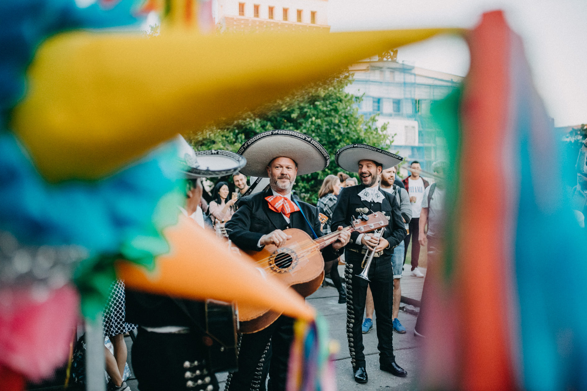 Kulturnímu programu bude vévodit sobotní velkolepý průvod masek a brazilských bubnů pod vedením Tam Tam Batucada, který povede od Štvanické lávky HOLKA do Holešovické tržnice v 17 hodin. V pátek se představí mexičtí hudebníci Mariachi Azteca de Praga. Doprovodný program nabídne: hravé lekce španělštiny, ochutnávku kávy, speed dating ve španělštině, večerní salsatéku s vybranými latino DJs. Pro děti je připravena každý den mexická Piňata se sladkostmi, dětské výtvarné dílničky, malování na obličej, čtení ve španělštině, a další aktivity.