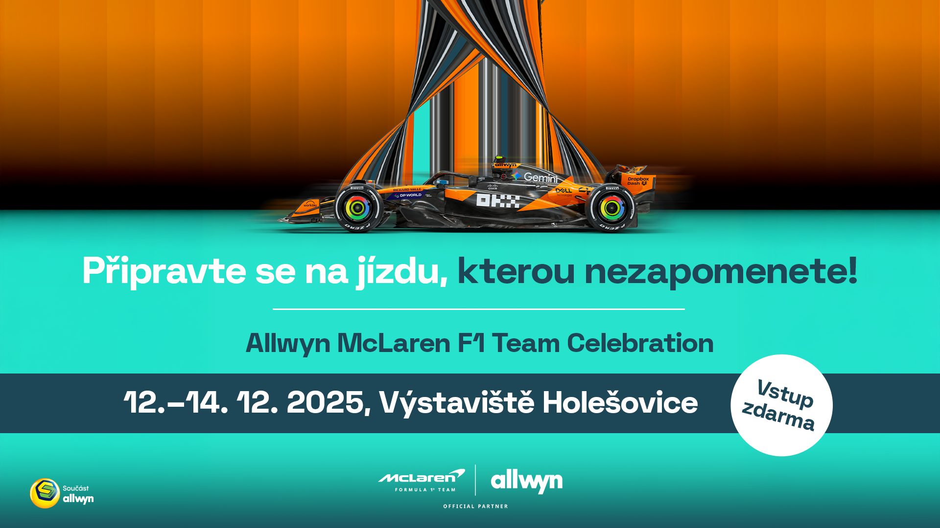 Čekají na Vás velkoformátové instalace, showcar MCL39, technologie závodního prostředí, speciální exponáty, simulátory, které si budete moct rovnou vyzkoušet a mnoho dalšího!