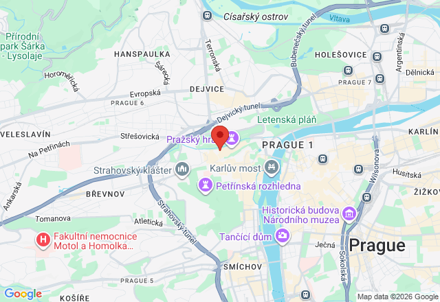Navštívíme s výkladem katedrálu sv.Víta a Královský palác, baziliku sv.Jiří a Zlatou uličku.