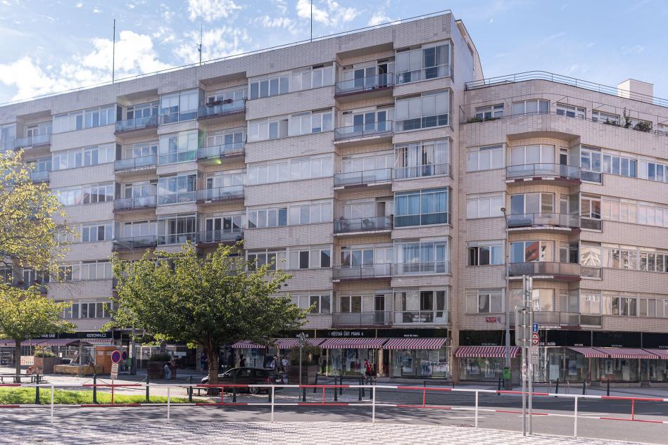 Zveme vás na komentovanou prohlídku architektonické perly, při níž navštívíme prostory běžně nepřístupné veřejnosti: od vstupního vestibulu přes garáže a dochovaný kryt až po střešní terasu s úchvatným výhledem na Prahu.