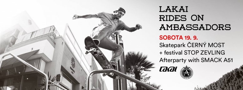 Opět je tu, nová skateboárdová sezóna a s ní i již tradiční skate tour pro nesponzorované jezdce s názvem Lakai rides on Ambassadors. Koncept této tour zůstává opět stejný a to podpořit skate scénu jezdců, kteří nemají sponzory a nejsou nikým podporováni. 4 zastávky po celé republice se budou skaters potkávat a závodit o věcné ceny v hodnotě 45.000 kč na každé zastávce + bonus, vítěz celé série a to v obou kategoriích získává roční podporu od firmy Ambassadors formou sponzoringu!