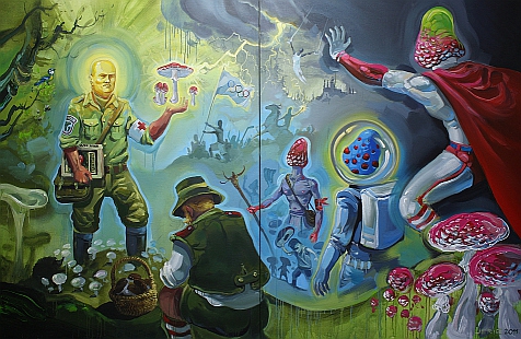 „Houbaření mě opravdu dost fascinuje. Vidím v něm i symbol toho, jak lidé chtějí vytěžit z přírody, co se jen dá. Brát a žrát. Houby jsou však neuvěřitelně tajemný a inspirativní druh, který lze jen těžko cele postihnout. Proto se téma hub nese mojí tvorbou tak říkajíc jako červená nit - nebo možná jako červenobílá hlava muchomůrky,“ doplňuje Karel Jerie.