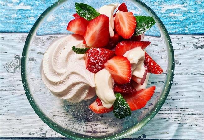 Po hlavním jídle vám na stole přistane osvěžení v podobě jahod s bílým chřestem. Výborná záležitost. A sladkou tečku tvoří pusinky se smetanovým krémem a jahodami alias Pavlova s jahodami.