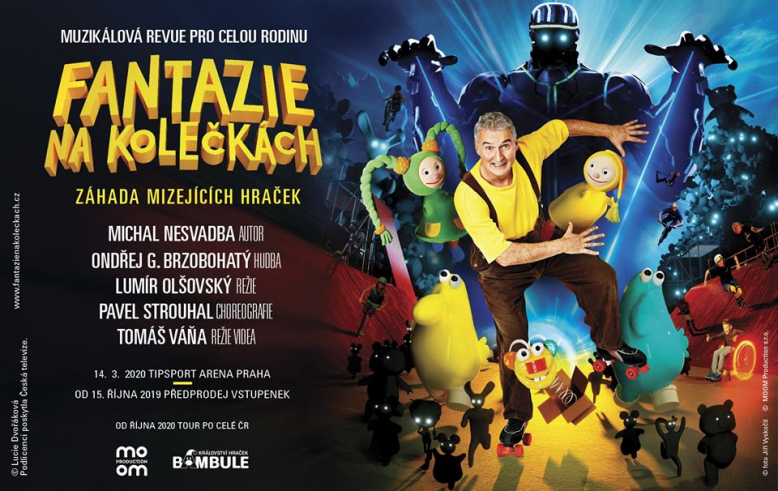Michal Nesvadba, všem dobře známý z televizního pořadu Kouzelná školka nebo ze seriálu Abeceda s Michalem, chystá premiérově na 14. března 2020 do Tipsport Areny v Praze velkolepou rodinnou show Fantazie na kolečkách s podtitulem Záhada mizejících hraček, která pobaví děti od tří let, ale i jejich starší sourozence, rodiče či prarodiče. Ve výpravně-poetické revue, v jejímž autorském týmu se vyjímají jména jako Lumír Olšovský (režie), Ondřej Gregor Brzobohatý (hudba) či Pavel Strouhal (choreografie) nebo Tomáš Váňa (režie videa), vystoupí čtyřicet účinkujících na kolečkových bruslích, koloběžkách, kolech, jednokolkách, tříkolkách, kolonožkách nebo ve šlapacím autě. Mezi nimi i mistři světa či Evropy ve freestyle na koloběžkách, na in-line bruslích nebo na kolech, ale i vítězové soutěže Česko Slovensko má talent. V autorské show uvidíte živě skřítky Bafíka, Zeleňoura nebo Žluťouna a samozřejmě nebudou chybět ani František s Fanynkou z Fanfárie v životní velikosti, stejně jako Michalovy vynálezy a unikátní laserová kouzla v podání Lasermana. V příběhu záhadně mizejících hraček nakonec epochálně zvítězí dobro nad zlem a veselý svět skřítků, kteří jsou kolem Vás a ani o nich nevíte, zůstane navždy kamarádem všech dětí na světě.