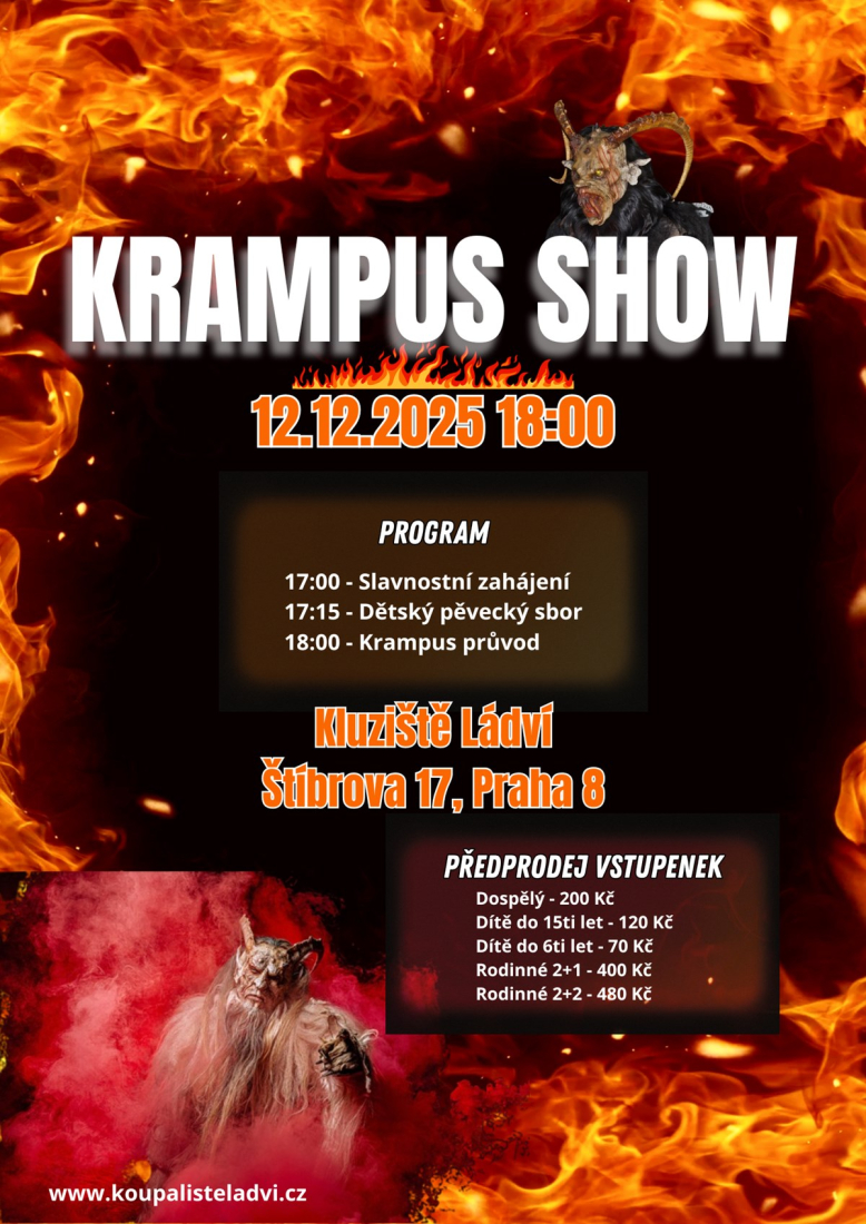 Už 12. 12. 2025 od 18:00 ožije Kluziště Ládví (Štíbrova 17, Praha ) démonickou atmosférou a jedinečným Krampus průvodem!